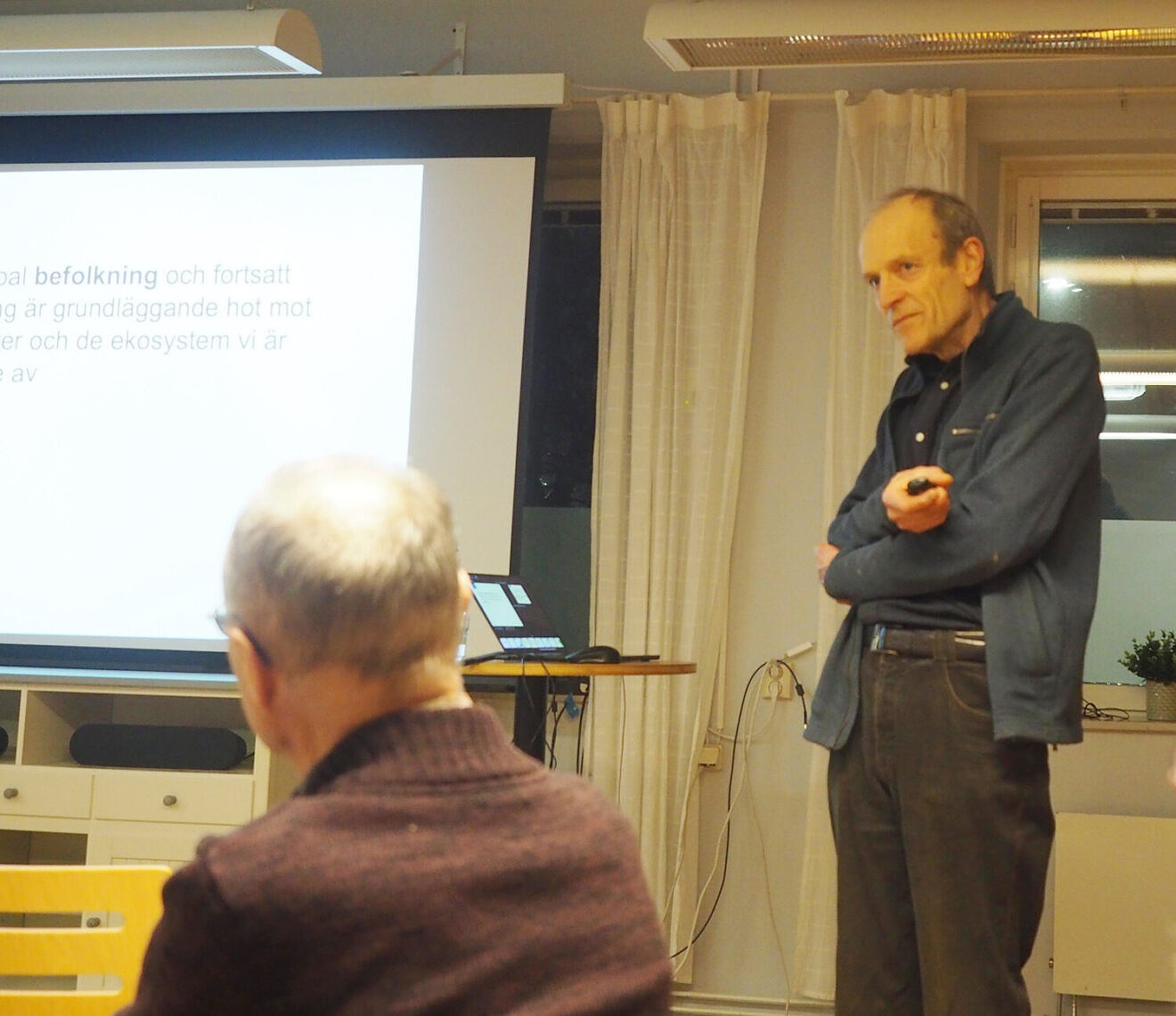 Ett 30-tal personer hade dykt upp på föreläsningen av Frank Götmark på Bohusläns Museum. Han har länge varit engagerad i hur påverkan på miljö och natur ser ut i vårt samhälle och är nu speciellt engagerad i hur lite uppmärksamhet den växande befolkningen på jorden ges i debatt om klimat och miljö.